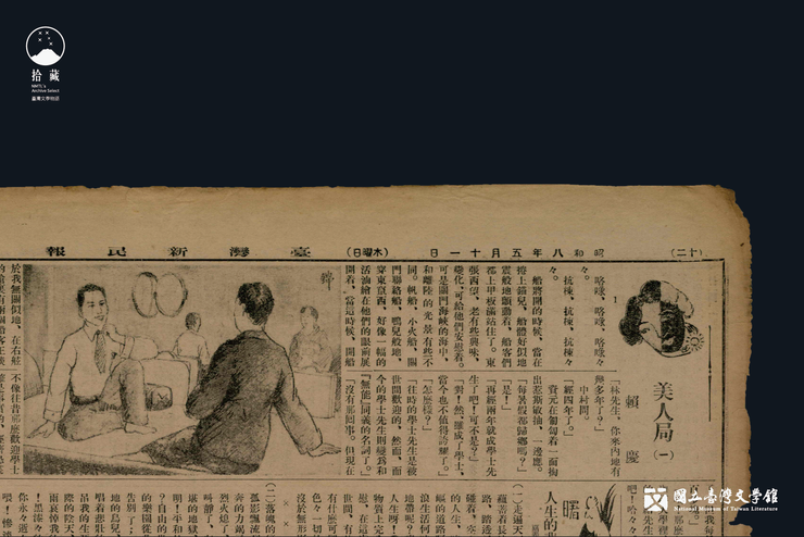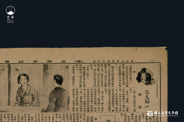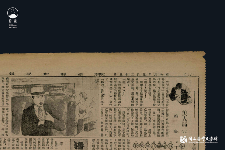 「當然。這故事可正精采呢!上回說到進了百合子的家,後面發生了甚麼,我自是有許多猜測,不過都比不上讀賴先生親手寫下的劇情--」一談起這賴慶連載在報上的〈美人局〉,兩人似是話到投機,一邊熱切地討論著那詐騙的招數是從何而來、從哪裡可以看出端倪,又是一邊被對方逗得咯咯笑。