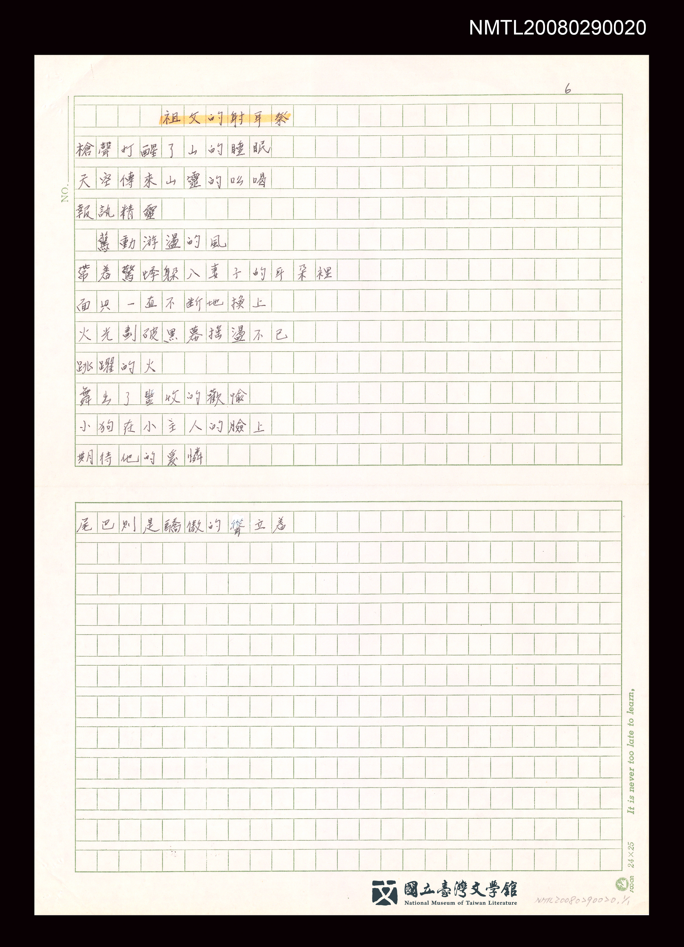 (國立臺灣文學館 典藏 / 文學台灣雜誌社 捐贈 / 藏品編號 NMTL20120210110)