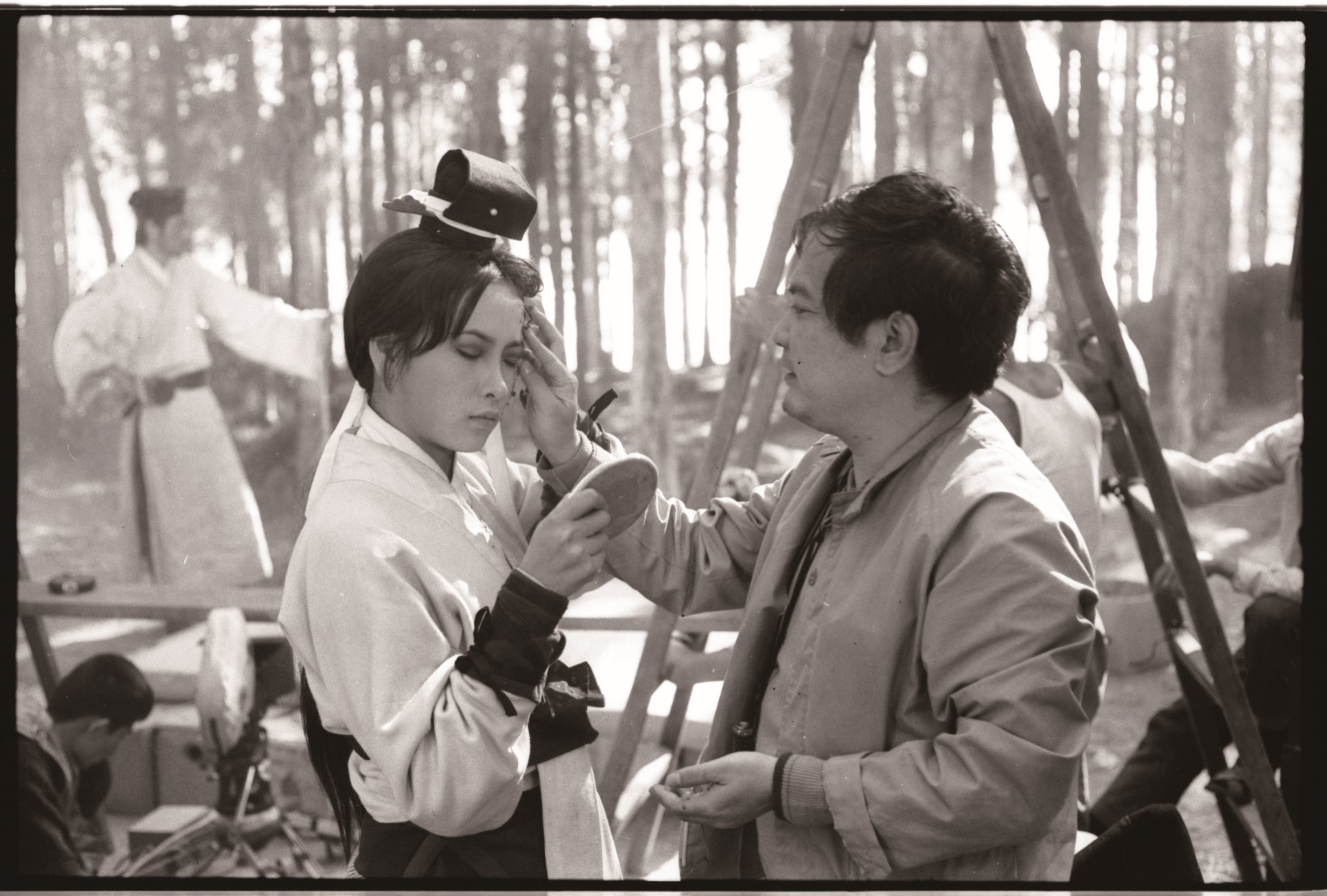 此工作照前景為導演胡金銓(右)幫徐楓(左,飾楊慧貞/之芸)補妝,左後方為白鷹(飾石問樵)。