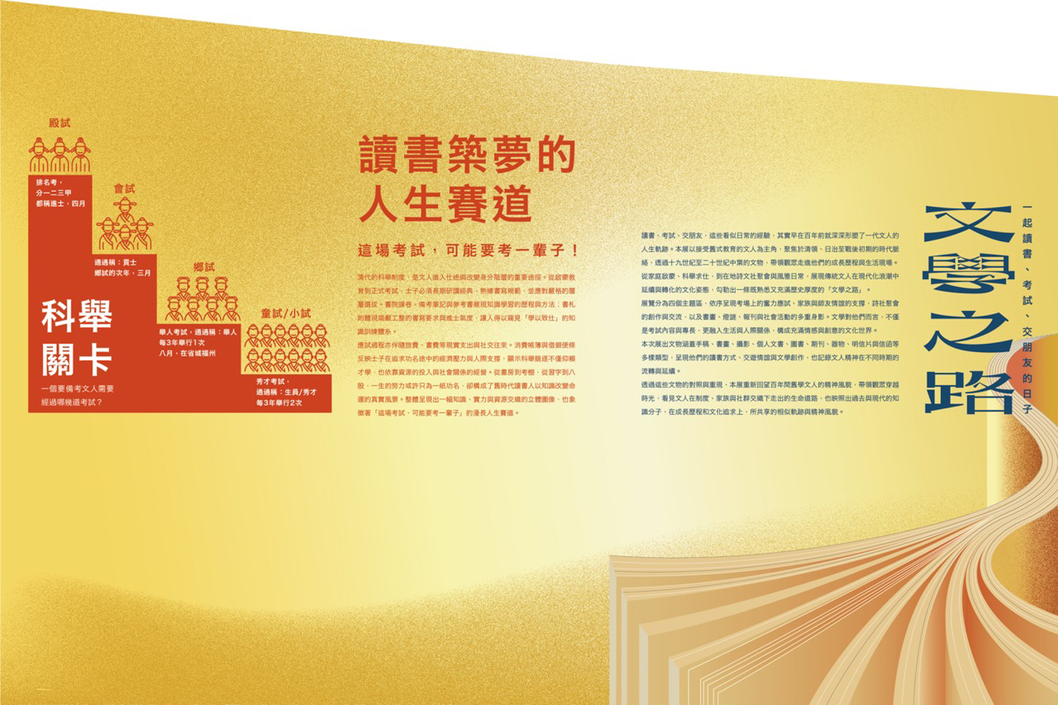 應試過程亦伴隨旅費、書費等現實支出與社交往來。消費帳簿與借銀便條反映士子在追求功名途中的經濟壓力與人際支撐,顯示科舉競逐不僅仰賴才學,也依靠資源的投入與社會關係的經營。從書房到考棚,從習字到八股,一生的努力或許只為一紙功名,卻構成了舊時代讀書人以知識改變命運的真實風景。整體呈現出一幅知識、實力與資源交織的立體圖像,也象徵著「這場考試,可能要考一輩子」的漫長人生賽道。