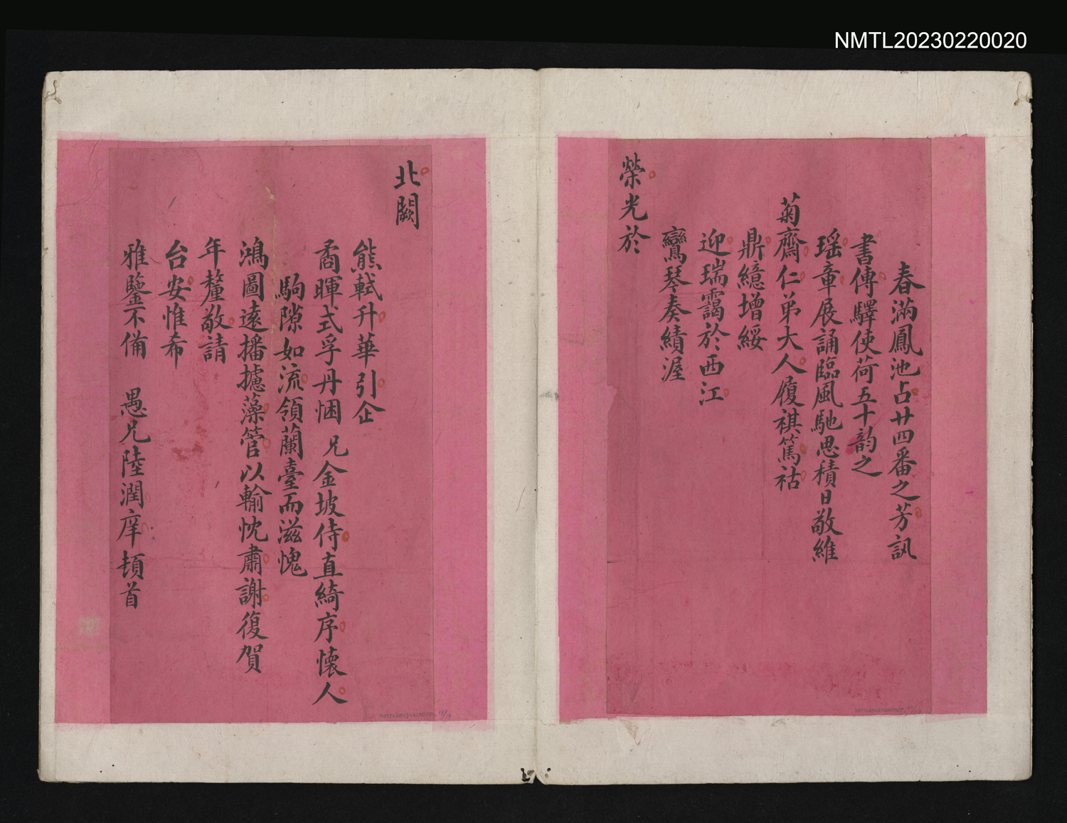 清同治年間狀元陸潤庠致菊齋的信札,書風端正工整。清代殿試要求每行書寫二十四字,全文約二千字,不得塗改,並以字跡整潔、筆畫嚴謹為基本規範。所見字體呈「館閣體」楷書風格,反映清代高級文官在書寫上所重視的端嚴與法度。