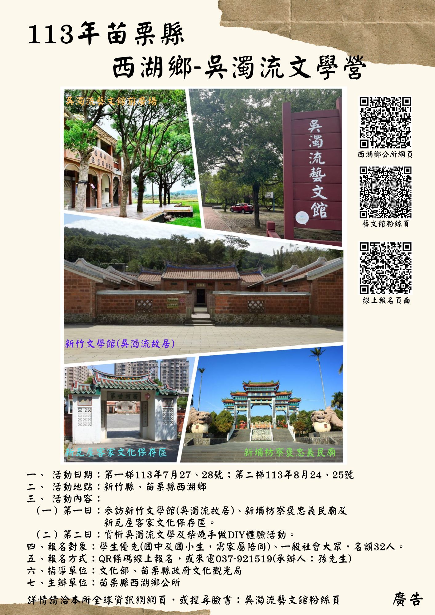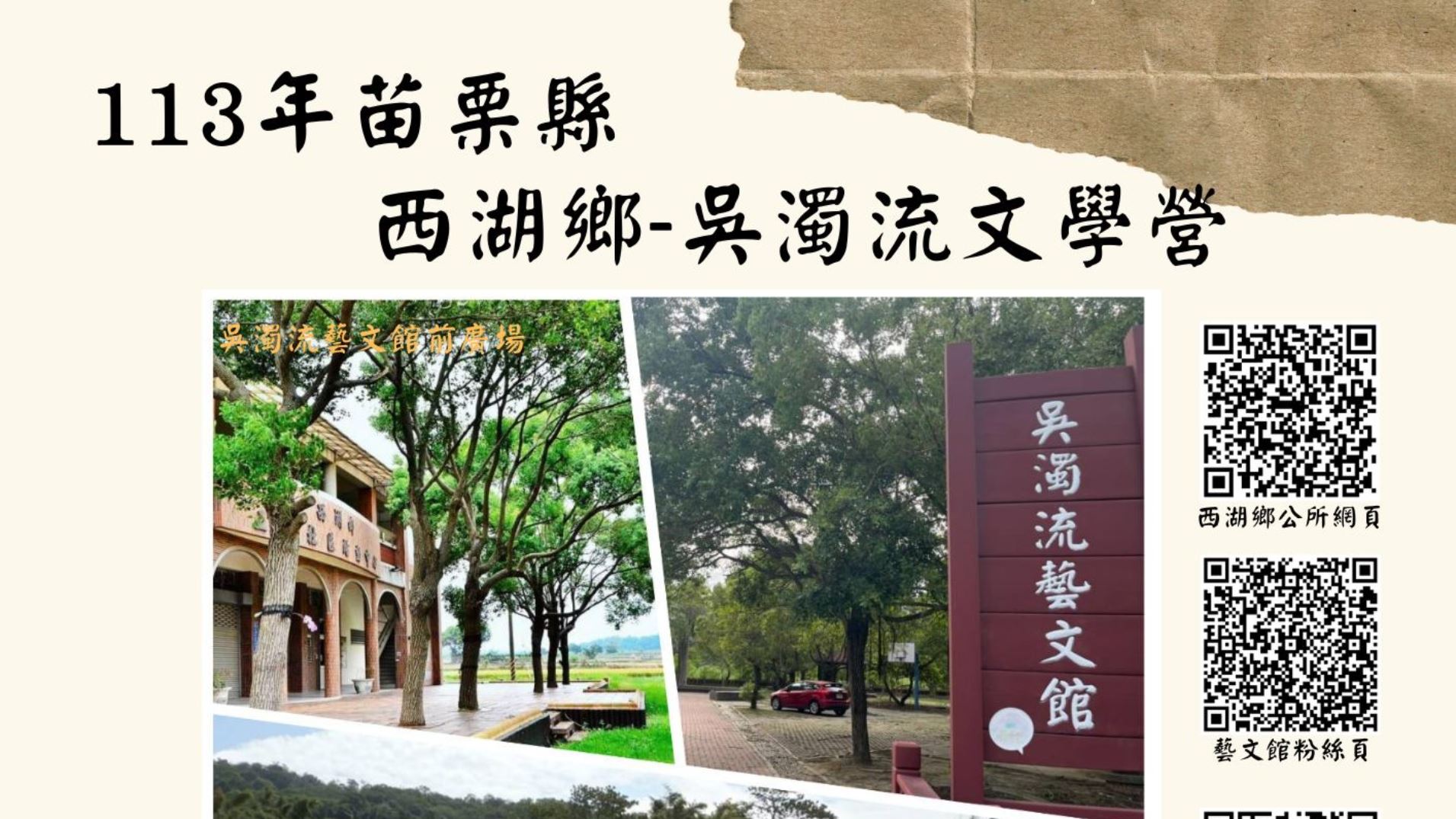 公告「113年吳濁流文學營」活動辦法及相關資訊(詳情可至西湖鄉公所-首頁-最新訊息 處參閱)