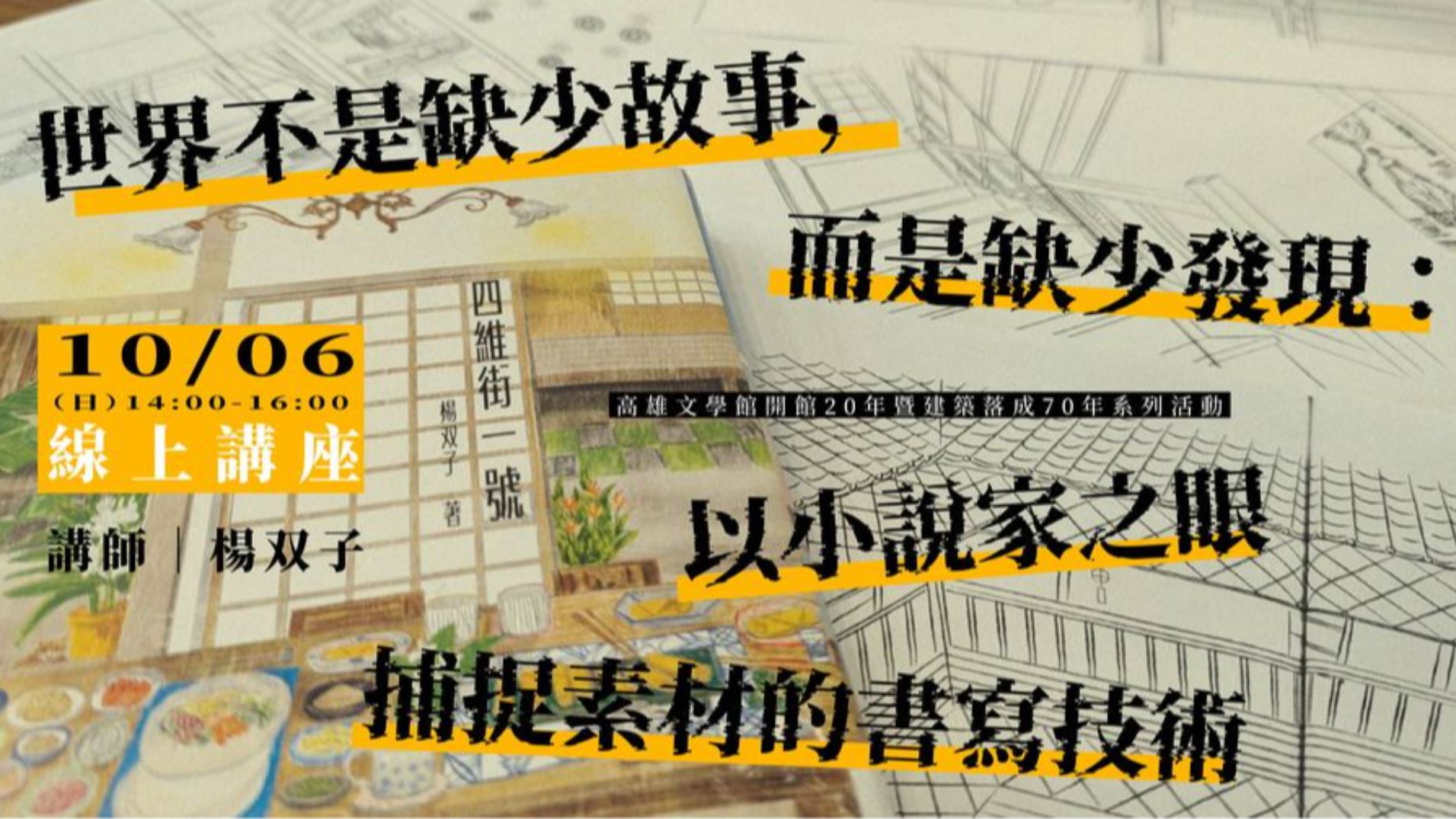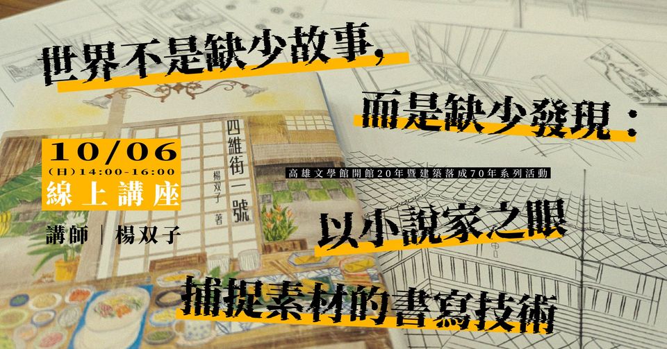 講題︱世界不是缺少故事,而是缺少發現:以小說家之眼捕捉素材的書寫技術