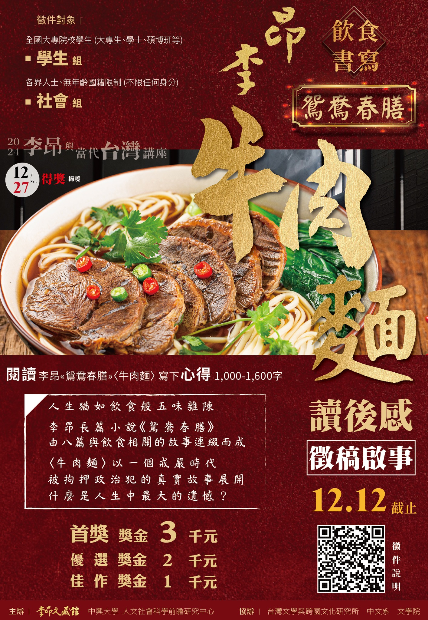 2024李昂文學《鴛鴦春膳》徵稿啟事